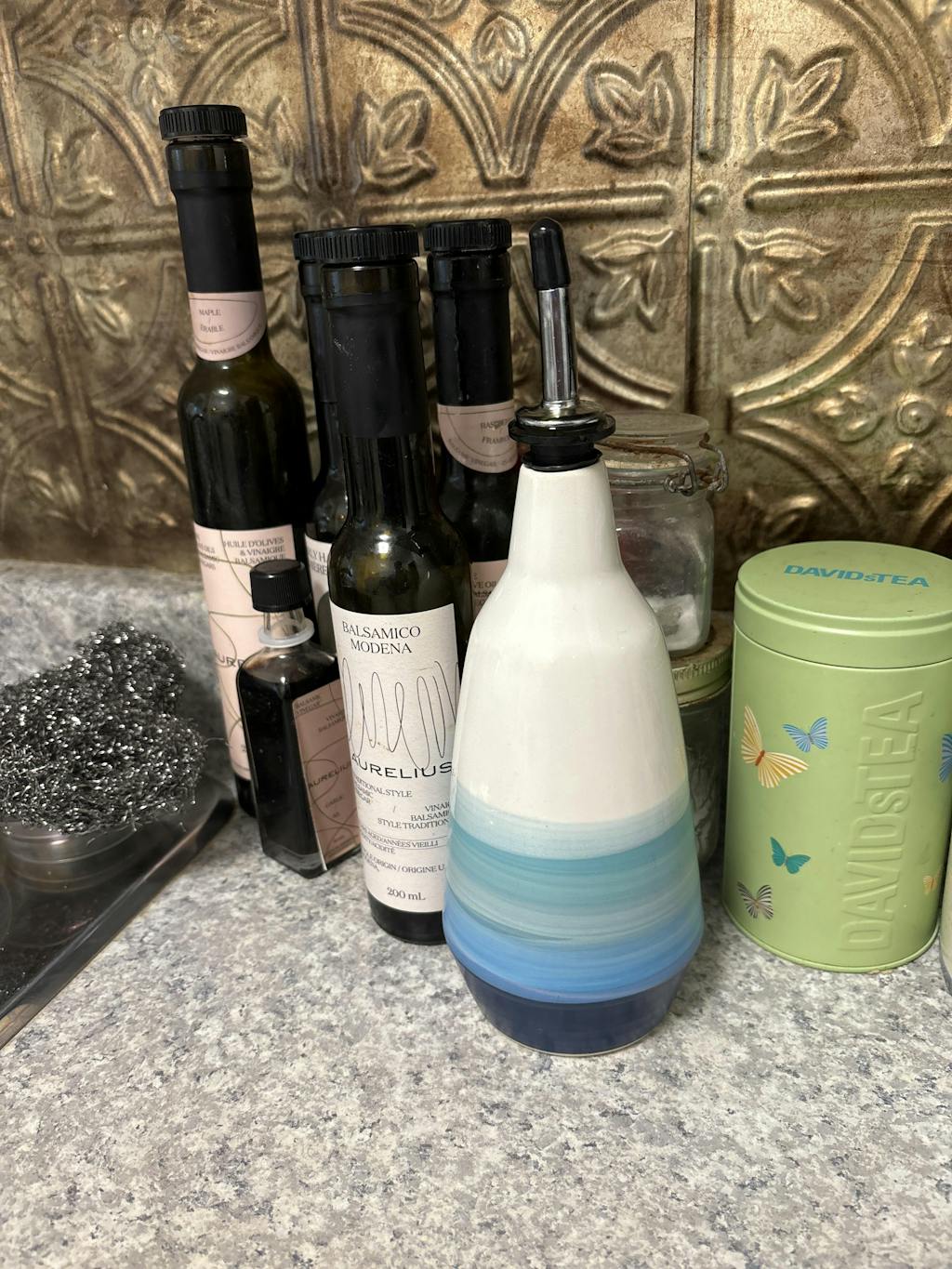 Each cruet is hand painted and unique. Will hold 400ml and made of porcelain, stoneware. Kilned at 2200F (1204 C). Glazed inside the bottle, matte exterior. Dishwasher safe. Includes pour spout seen in photo.